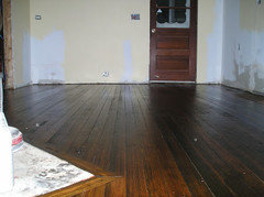 Cut the linoleum into smaller sections with a utility knife, advises. Use the utility knife to first slice the linoleum into a 12″ wide strips. How to remove linoleum (or vinyl) adhesive flooring from original hardwood or sub flooring. You'll find a beautiful, original, 1920s maple hardwood floor buried under layers of vinyl or linoleum, plus a nasty layer of linoleum adhesive that has been pressed into the hardwood floor below by years of foot traffic. Q.is there an easy way to remove this layer of black stuff on my hardwood floor?